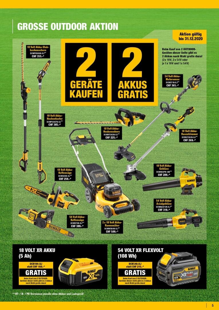 Beim Kauf von 2 DeWalt Gartengeräten, die im Beitragsbild gezeigt werden erhalten Sie zwei Akkus GRATIS dazu! Dabei haben Sie die Wahl zwischen diesen Geräten: 18V BCD184-XJ / 54V DCB546-XJ - 2x18V, 2x54V oder je 1x18V und 1x54V".